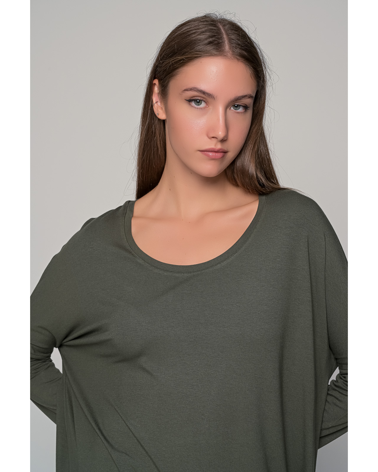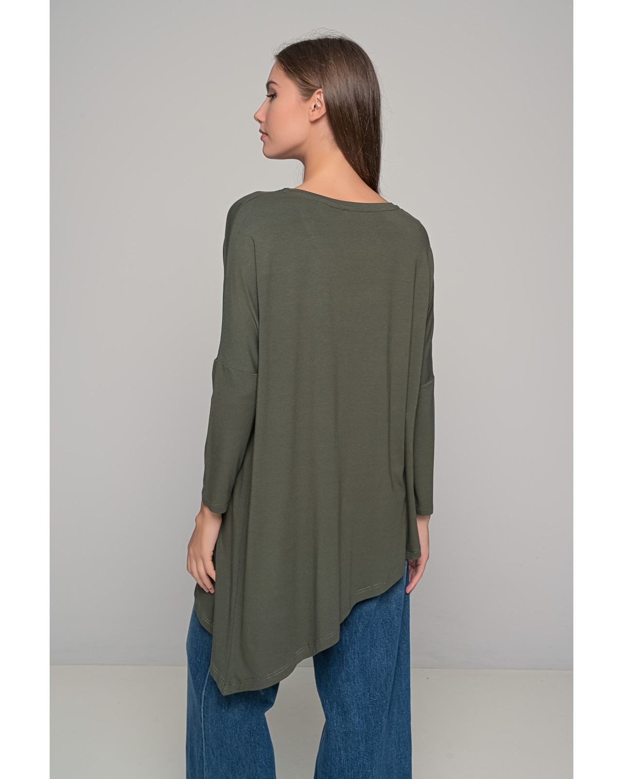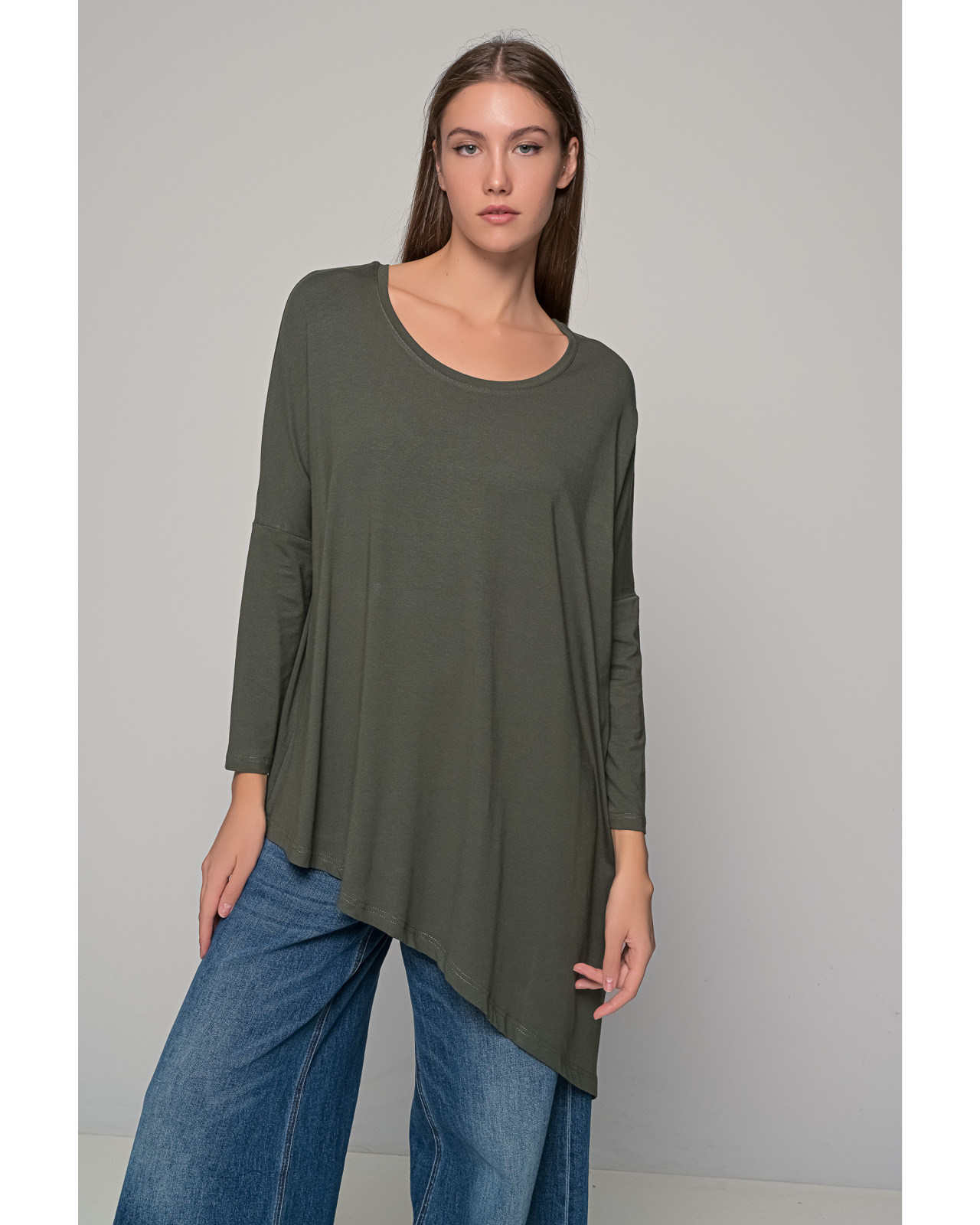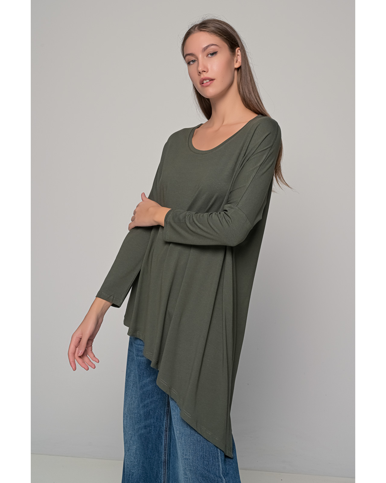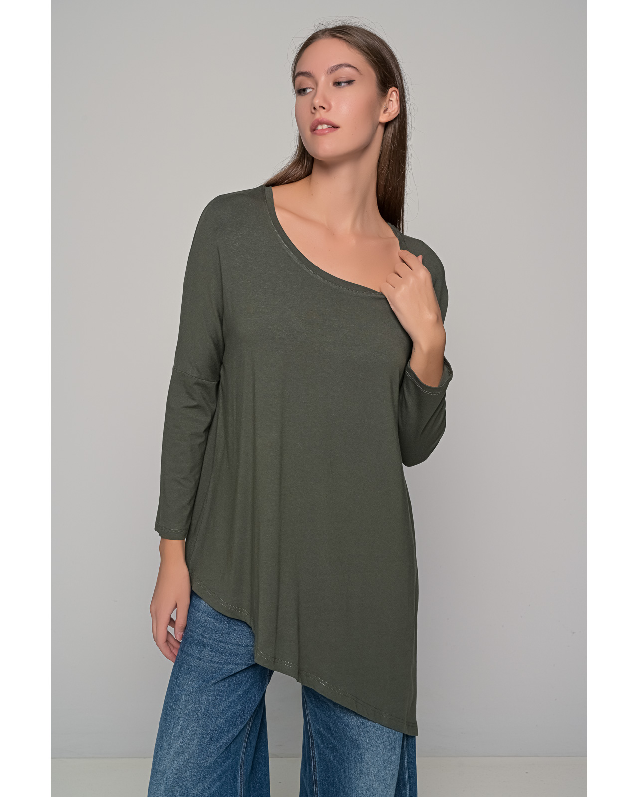 Μπλούζα βισκόζ ασύμμετρη,λαιμόκοψη μακρυμάνικο