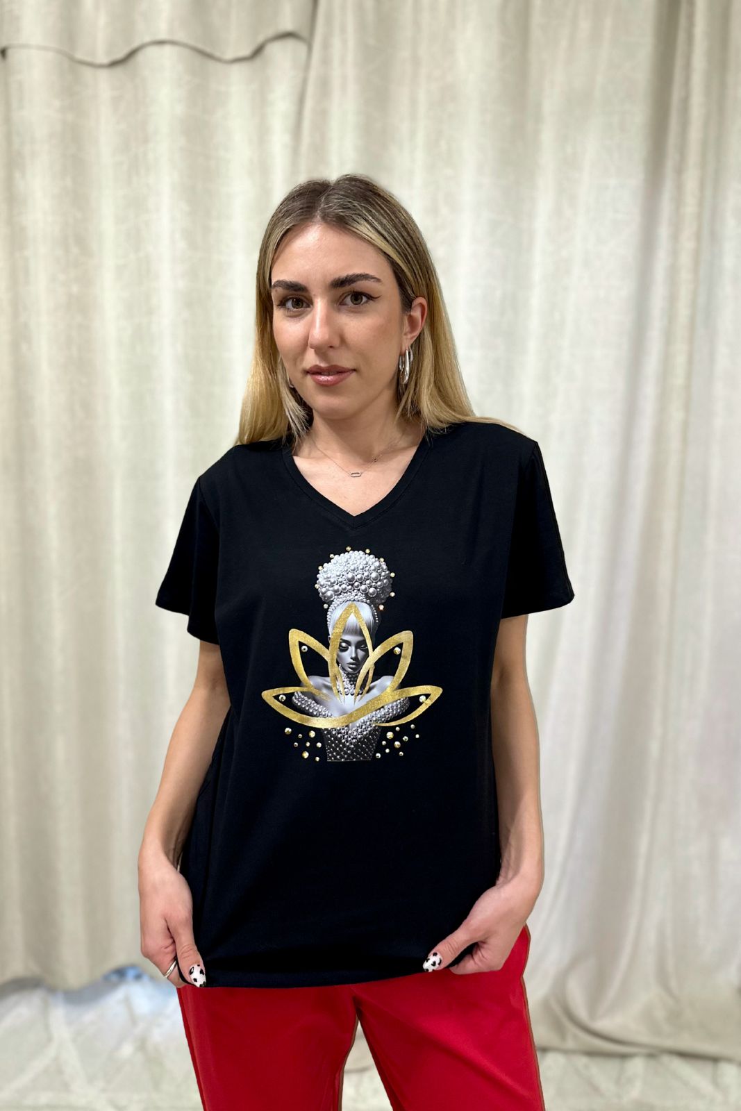 Αυτή η λευκή βαμβακερή μπλούζα με κοντό μανίκι ξεχωρίζει με το τύπωμα Lotus Girl with Pearls και τις λαμπερές λεπτομέρειες από κρύσταλλα Swarovski. Άνετη και δροσερή, με γραμμή που φοριέται εύκολα σε κάθε περίσταση.